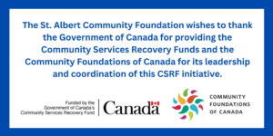 The St. Albert Community Foundation (SACF) recognizes that charities and non-profit organizations led the charge to assist those in need before, during and after the pandemic. The Community Services Recovery Fund responds to what Community Service Organizations need right now, and supports organizations as they adapt to the long-term impacts of the pandemic. We acknowledge that the demand far exceeded the funding amounts available, and as a result, SACF was only able to fund a small portion of the many projects that applied.